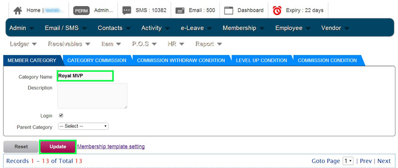 Step 5: Insert new membership category name and click ‘Update’ to apply.